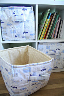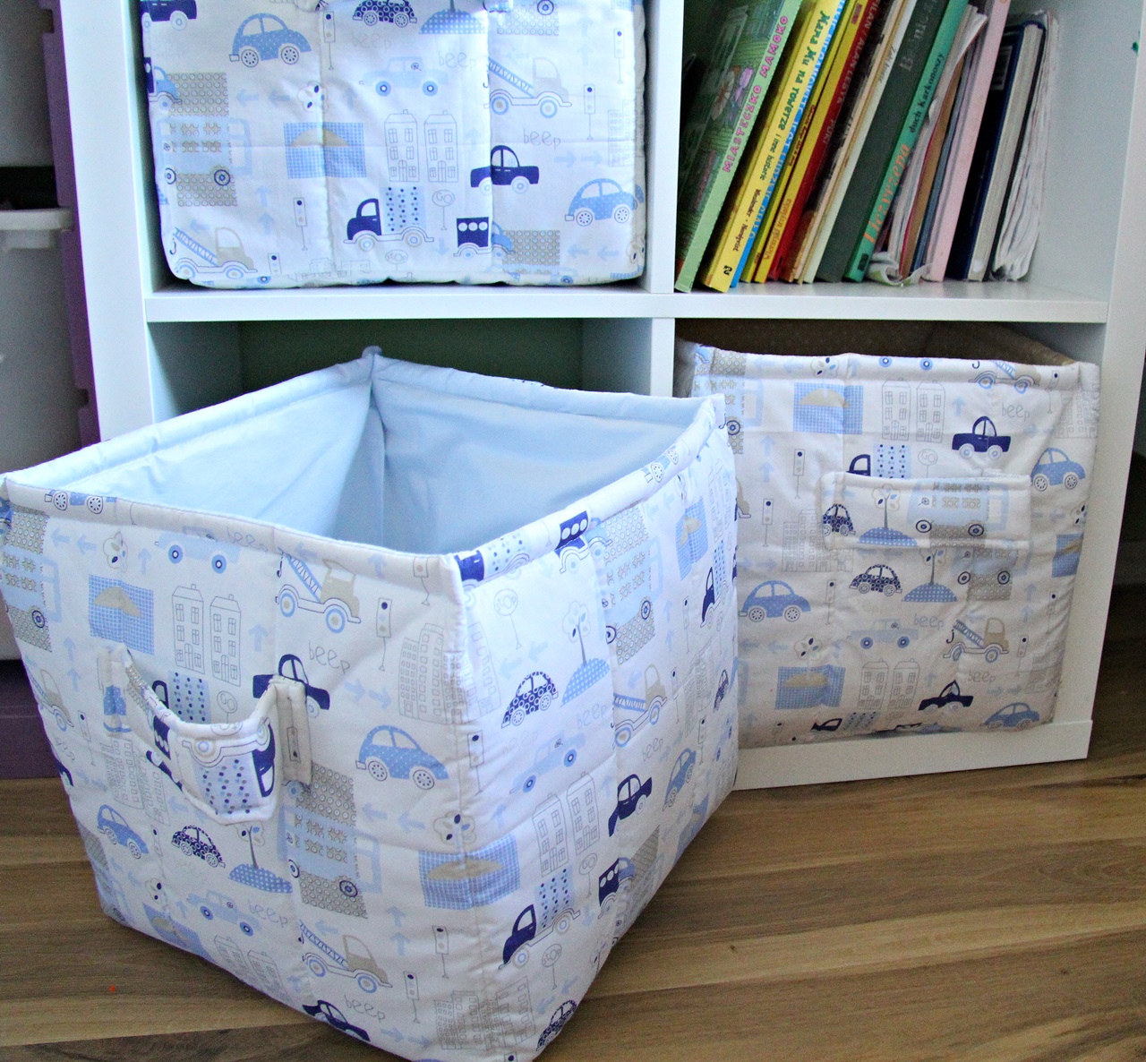 Tymczasem do dziecięcych pokojów zawita też ład i porządek za sprawą pojemników z materiału. Usztywniane watoliną, z kolorowym wnętrzem. Idealne, bo da się je prać ( kto ma dzieci, wie o co chodzi;)